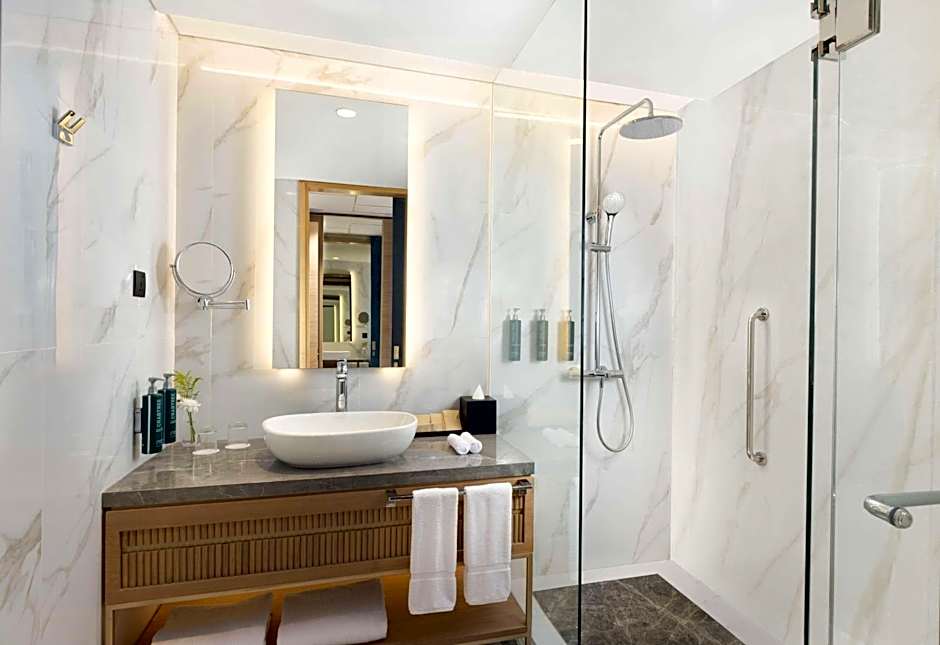 The spacious air-conditioned suite provides a flat-screen TV with cable channels, a mini-bar, a tea and coffee maker, a seating area as well as city views. The unit offers 1 bed.