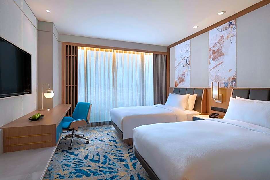 The spacious air-conditioned double room features a flat-screen TV with cable channels, a mini-bar, a tea and coffee maker, a safe deposit box as well as city views. The unit has 2 beds.