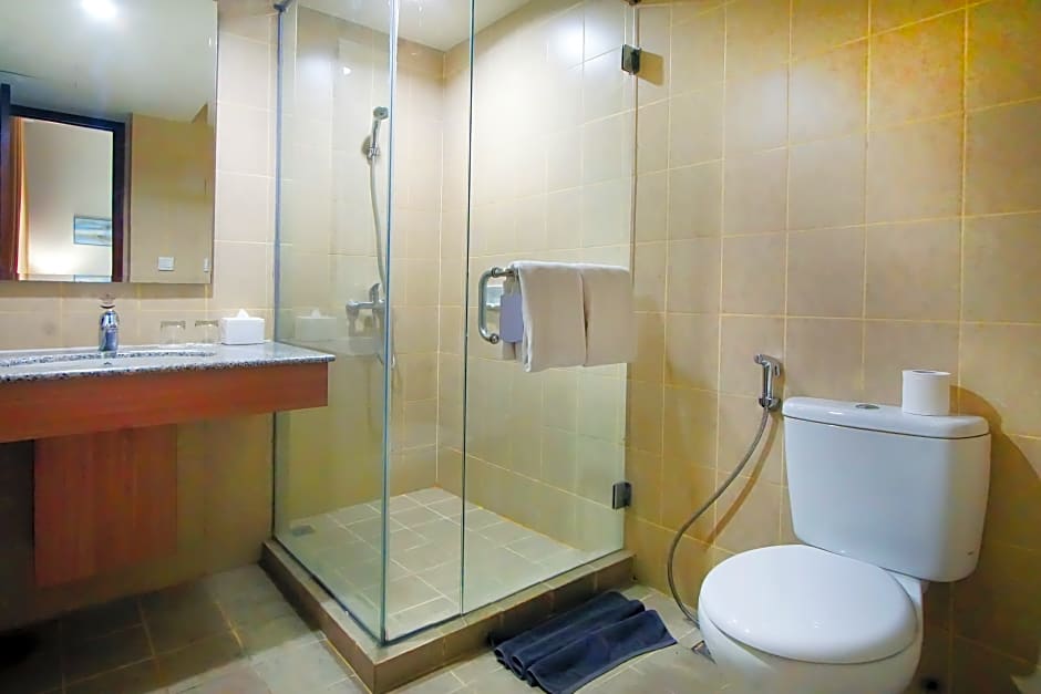 Guests at the Grand Dafam Ancol Jakarta can enjoy a range of leisure amenities during their stay. They can start their day with some exercise in the fitness center, followed by a relaxing time in the outdoor swimming pool. For those looking to unwind and indulge, the hotel offers a spa where they can enjoy various wellness treatments. The Cumi Cumi Café on site offers Indonesian and International cuisines, providing guests with delicious dining options. Additionally, visitors can take a stroll in the garden or spend some time on the balcony, enjoying the pleasant surroundings. With a 24-hour front desk and room service available, guests can plan their activities at any time.