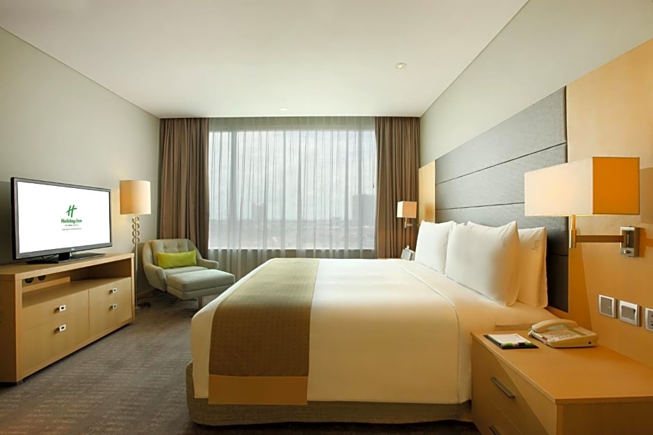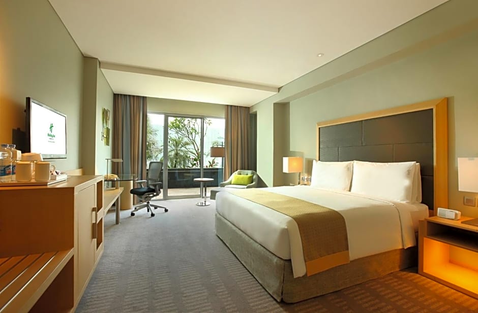 Guests can start their day enjoying a meal at the Botany Restaurant, featuring American and Asian cuisine in a modern ambiance. They can then relax by the outdoor swimming pool, which offers a view and is accessible to guests of all ages. For those traveling with children, there is a separate kids' pool available. If guests prefer to stay active, they can make use of the fitness center onsite. The terrace and garden provide tranquil spots to unwind. Shuttle services and airport shuttles make exploring the city convenient. With soundproof rooms, a business center, and room service, guests at Holiday Inn Jakarta Kemayoran have a variety of leisure amenities to enjoy during their stay.