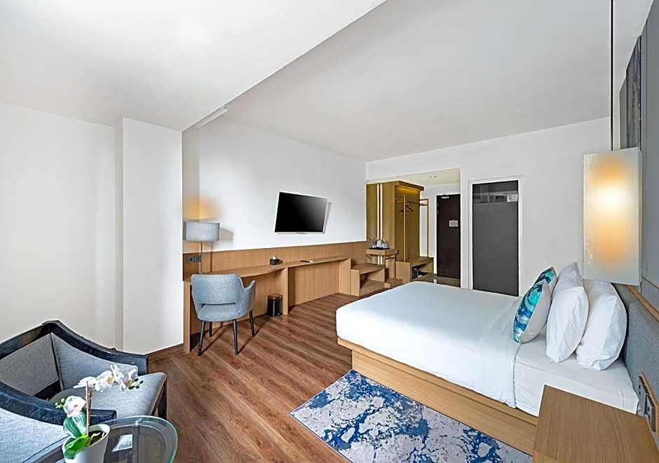 The air-conditioned suite has 1 bedroom and 1 bathroom with a bath and slippers. The suite features executive lounge access, a wardrobe, a safe deposit box, an electric kettle, as well as a flat-screen TV with cable channels. The unit has 1 bed.