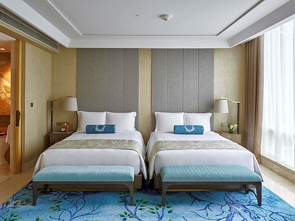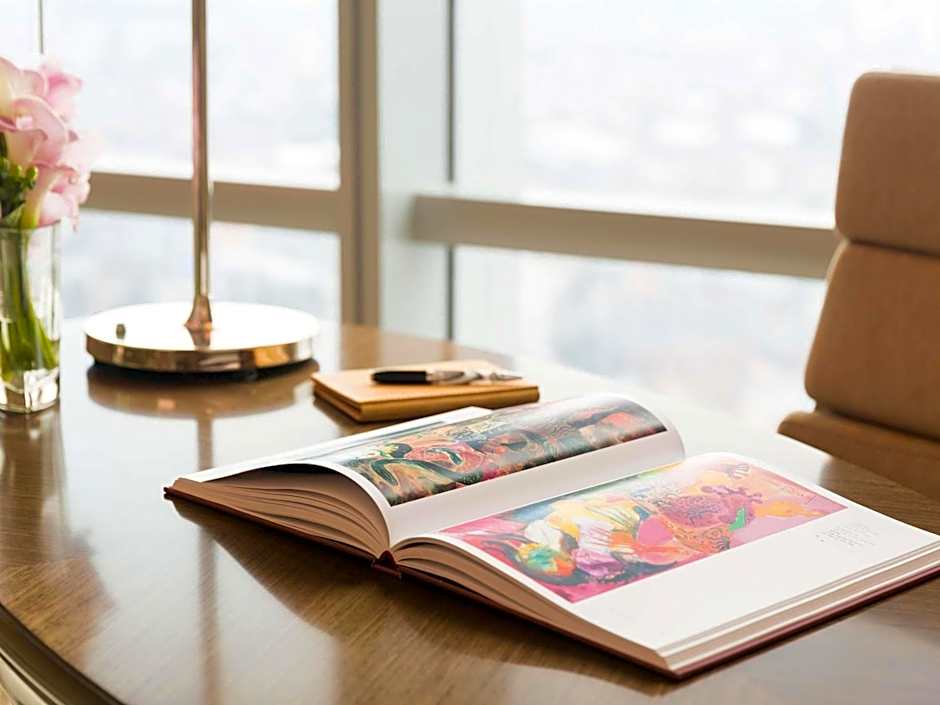 Offering panoramic views of the city, this corner suite has a separate living room and a working area. It also comes with a walk-in wardrobe, an private bathroom and an additional washroom for guests.