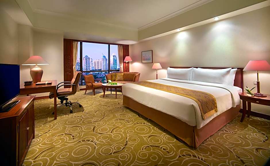 Tervetuloa The Sultan Hotel & Residence Jakarta — ylelliseen kotiisi kaukana kotoa Indonesian eläväisen pääkaupungin sykähtelevässä sydämessä! Sijaiten vain 2,5 mailia kaupungin keskustasta, tämä upea 5 tähden hotelli lupaa kiehtovan yhdistelmän mukavuutta ja seikkailua. Hinnat alkavat jo $82, joten voit hemmotella itseäsi ylellisillä palveluilla rikkomatta budjettia. Kuvittele rentoutuvasi ulkouima-altaalla, nauttivasi virkistävän juoman auringossa tai herkullisesta aamiaisesta, joka antaa energiaa päivällesi Jakartan nähtävyyksien tutkimiseen!