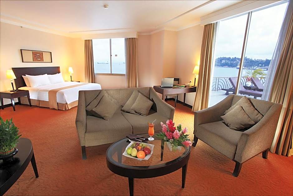 The spacious air-conditioned suite offers a flat-screen TV with cable channels, a mini-bar, a tea and coffee maker, a dining area as well as sea views. The unit has 1 bed.