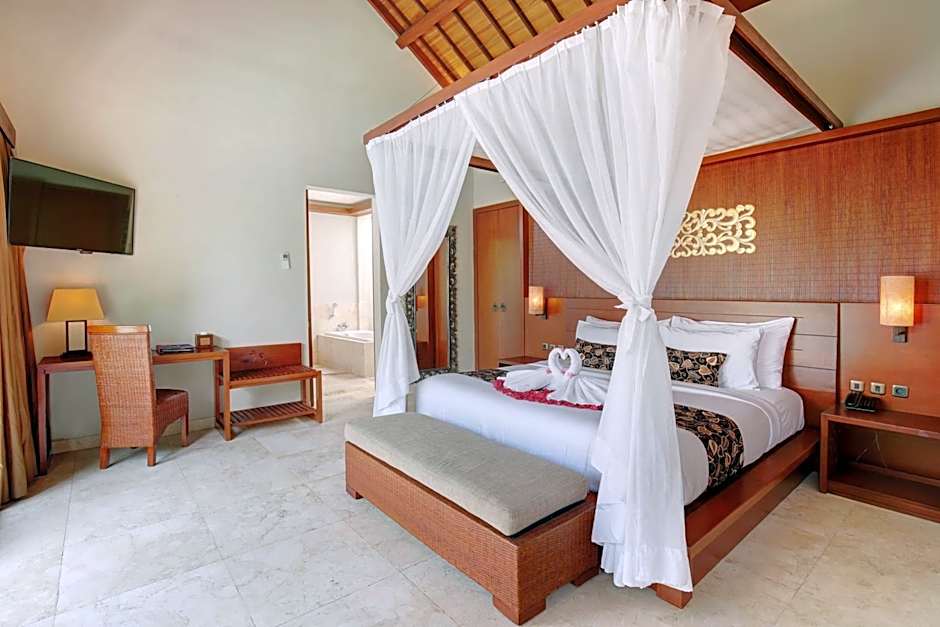 Welcome to Lumbini Luxury Villas and Spa, your oasis of tranquility nestled just 1,4mi from the lively heart of Jimbaran, Indonesia! With prices starting at just $108, you can unlock the door to luxurious living in an unforgettable resort. Surrounded by lush gardens and stunning views, this 4-star retreat is perfect for those looking to indulge in comfort and style—whether you're soaking up the sun in your own private pool or taking a leisurely stroll through the beautiful grounds.