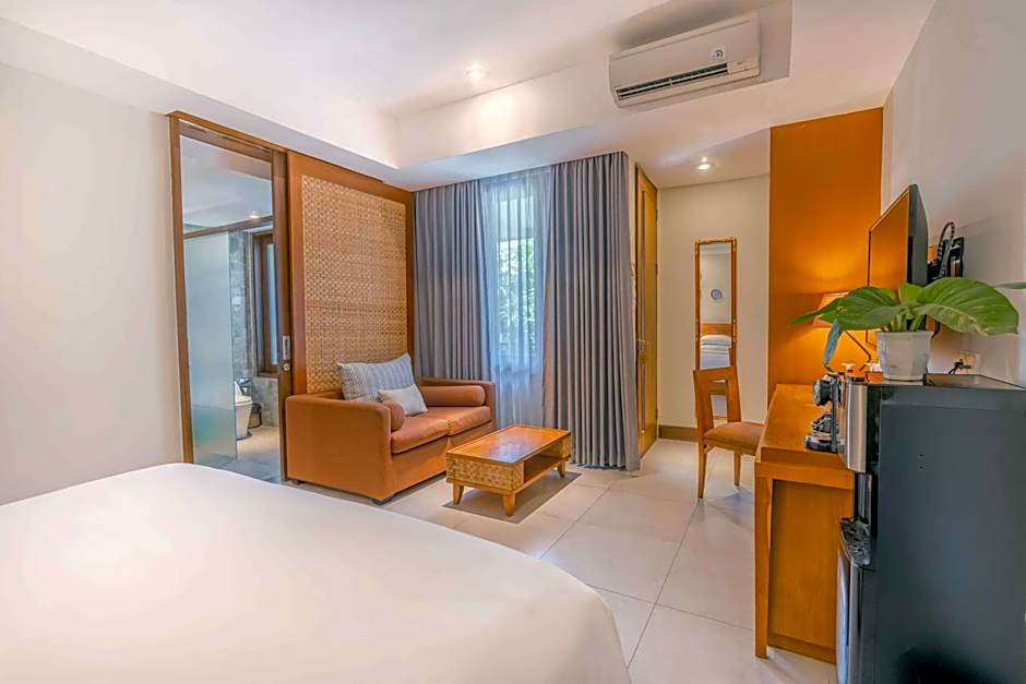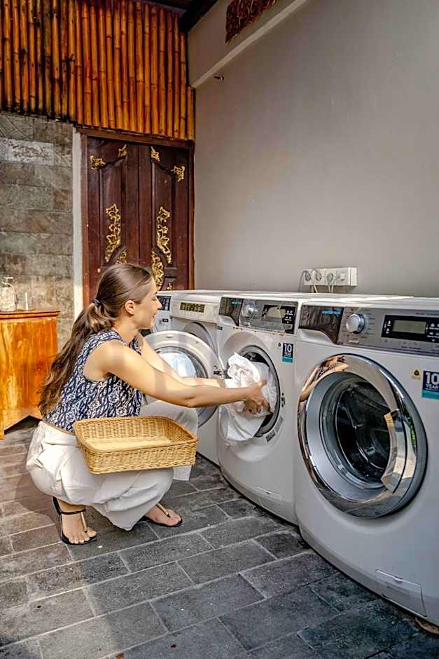 Offering a spacious layout presented in classic Balinese minimalist style, this room features a large balcony or terrace overlooking the swimming pool. Guests enjoy free unlimited laundry service.