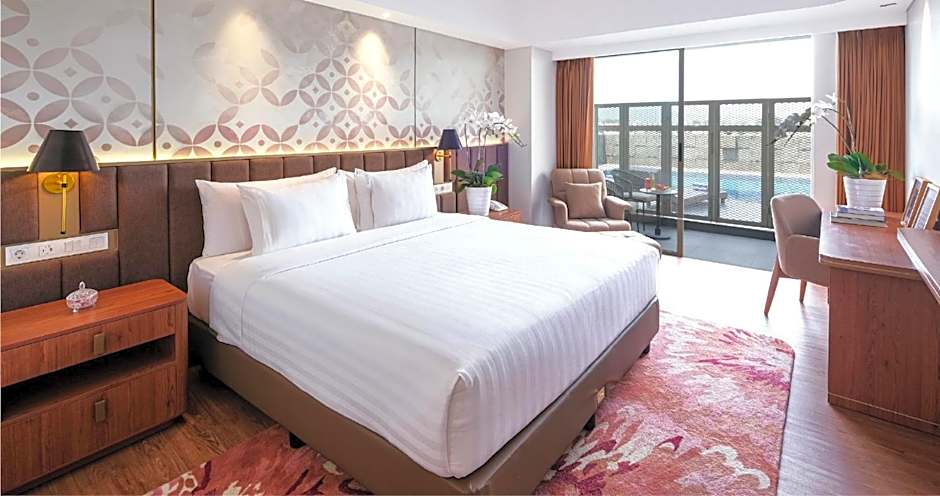 The Atria Hotel Malang offers a variety of room types, including Premier Twin Room, Suite, Premier King Room, Executive, Deluxe King Room, and Deluxe Twin Room. All rooms are non-smoking and can accommodate 2 adults. The room sizes range from 280 sqft to 560 sqft. Beds available include twin beds, queen size beds, and king size beds.