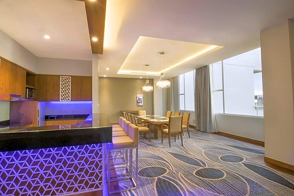 The hotel has four on-site restaurants. The Eatery offers Indonesian and International cuisine in a family-friendly and modern ambiance. Tao Yuan serves Chinese cuisine in a family-friendly and modern setting. Wrapped Lounge and Scoorta Pool Bar are also on-site, with family-friendly and modern ambiances.