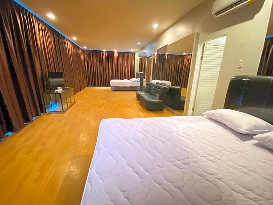 The family room features a private bathroom, air conditioning, a mini-bar, as well as a seating area with a flat-screen TV. The family room offers a TV, an electric kettle, a sofa and a tiled floor. The unit offers 2 beds.