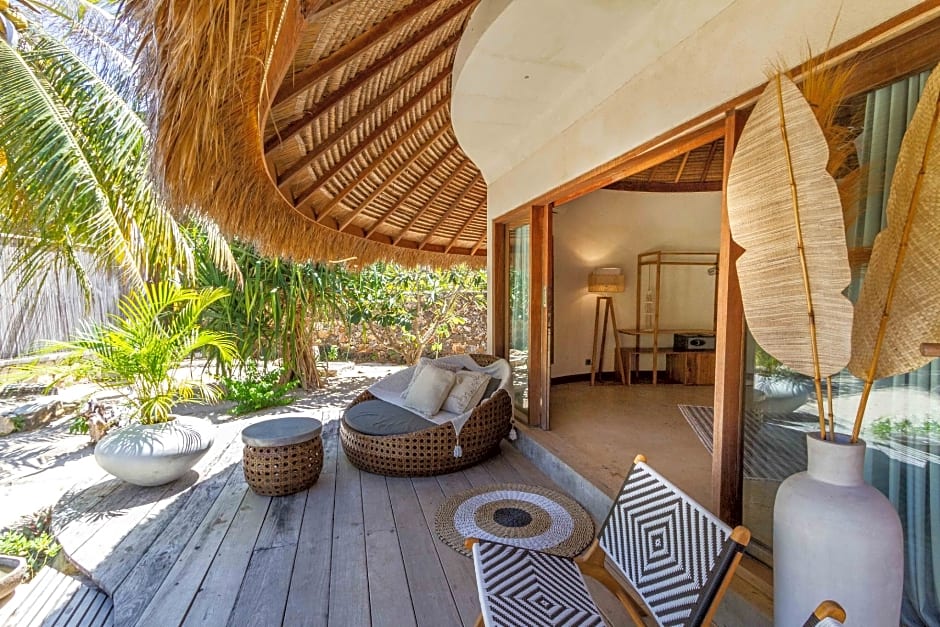 Accommodation options span a diverse mix of bungalows, suites, and lofts, all offering garden, ocean, or beachfront views. Examples include the Boutique Family Bungalow, Garden View (237 sqft), a suite-style setup for 2 adults and 1 child; the Boutique Bungalow, 2 Twin, Garden View (269 sqft), a triple-occupancy space for up to four adults and two children; and the Bungalow, Ocean View (216 sqft), a suite for 2 adults and 1 child. For those seeking extra space, the Loft Duplex (Apartment) adds a roomy alternative, rounding out a portfolio designed to fit different travel memories.