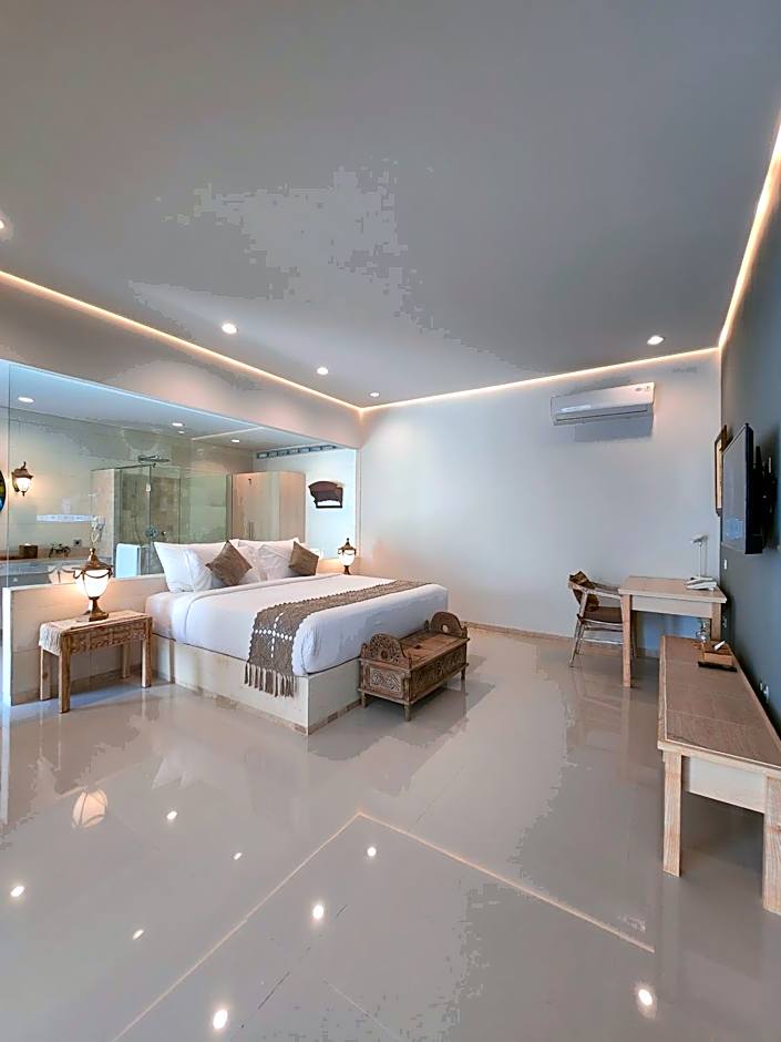 Royal Pool Villas offer a new concept of luxurious, private and modern villa building. Royal has expansive space and lavish interiors of one-bedroom with king size bed, 18 sqm private pool, open kitchen, and dining space, an ideal setting for couples and honeymooners. The ornate antiques and wood decorative bring a touch of Indonesian history to the modern setting.