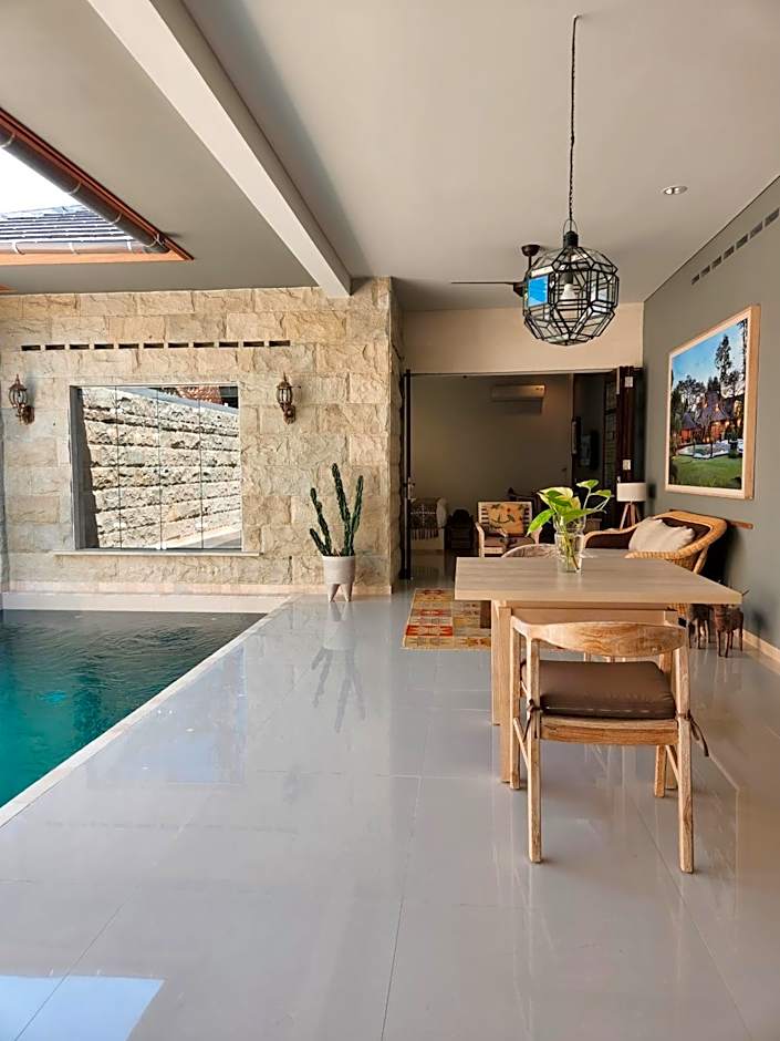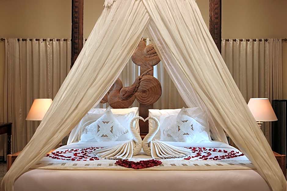 Originally recognized as a place to store grain and other foods in traditional Balinese home, Jineng is transformed as sleeping space or a place to relax with family, friends or relatives by Alindra Villa. This ethnic villa comes with one Queen Bed decorated with Balinese tropical garden elements in the villa. This villa features a balcony, mini-bar and tile/marble floor.