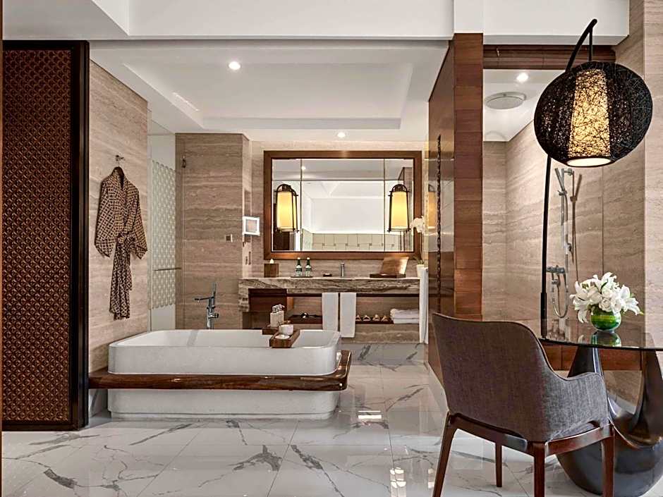 ヌサドゥアの手つかずのビーチフロントに建つこの5つ星の隠れ家は、時を超えたラグジュアリーと島ならではの魅力が調和しています。市中心部からわずか0.3マイルに位置し、Kawasan Pariwisata Btdc, Lot N5にあるため、太陽と海、海辺へは気軽に歩いて行ける—日差しに満ちた休暇への完璧な入り口です。