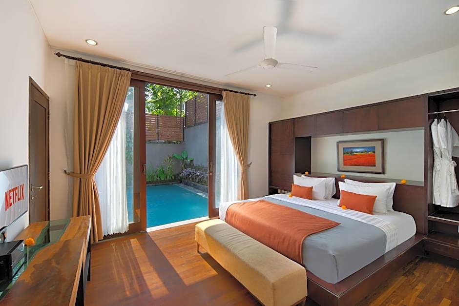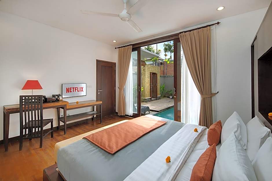 Settle into your private paradise where a sparkling private pool beckons for a refreshing dip. Not only is there an indoor swimming pool for year-round enjoyment, but you'll also find pet-friendly policies at no extra charge, so your furry friends can join the fun. Modern conveniences like free Wi-Fi, streaming services such as Netflix, and air conditioning ensure your stay is both relaxing and entertaining, while the balcony and garden views let you soak in Bali’s natural beauty from the comfort of your room.