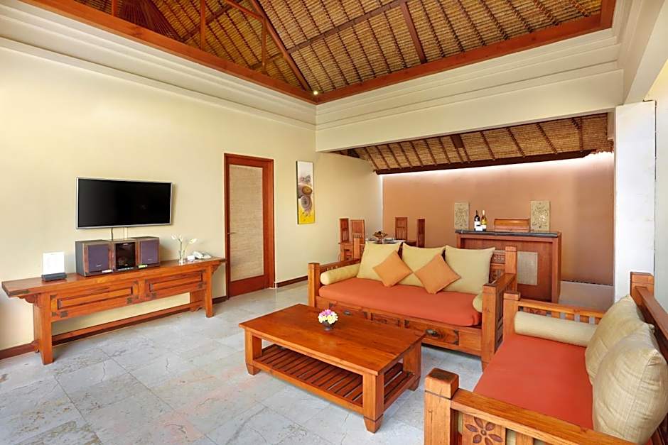 Featuring a private terrace with garden and pool views, this villa has a well equipped kitchen, dining area and ample living area with sofas. The bedroom has mosquito nets, cable TV with DVD player, and an private bathroom with bath and shower facilities.