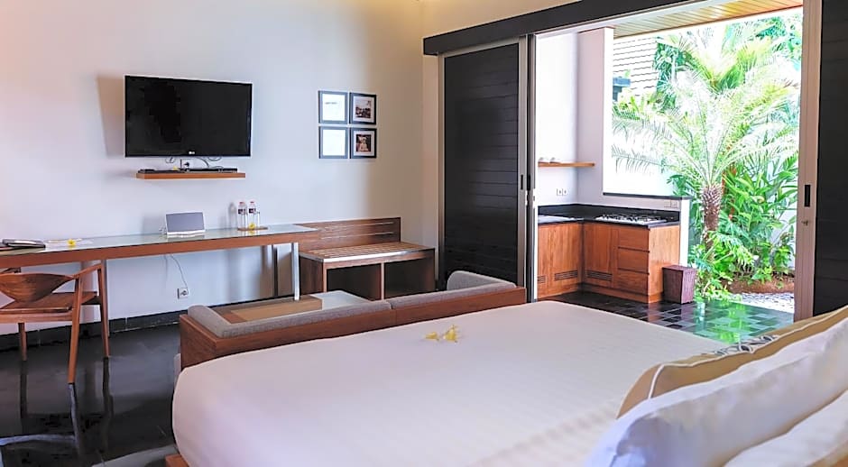 Featuring a 4 x 6.6 foot private pool, this villa comes with a kitchenette and a private balcony. It also has a 42-inch plasma TV.