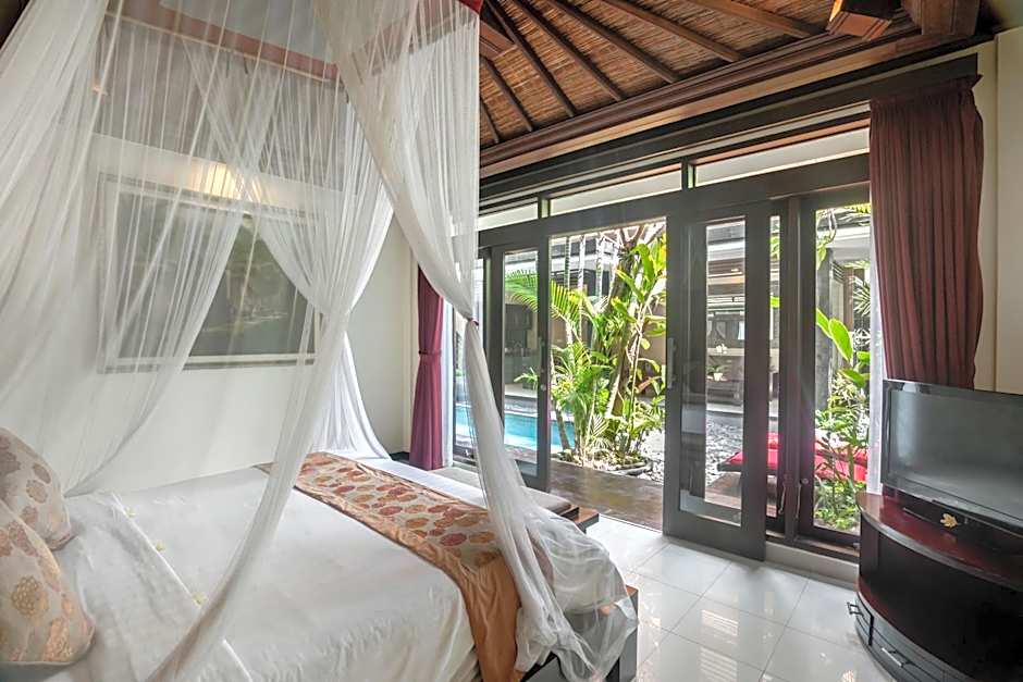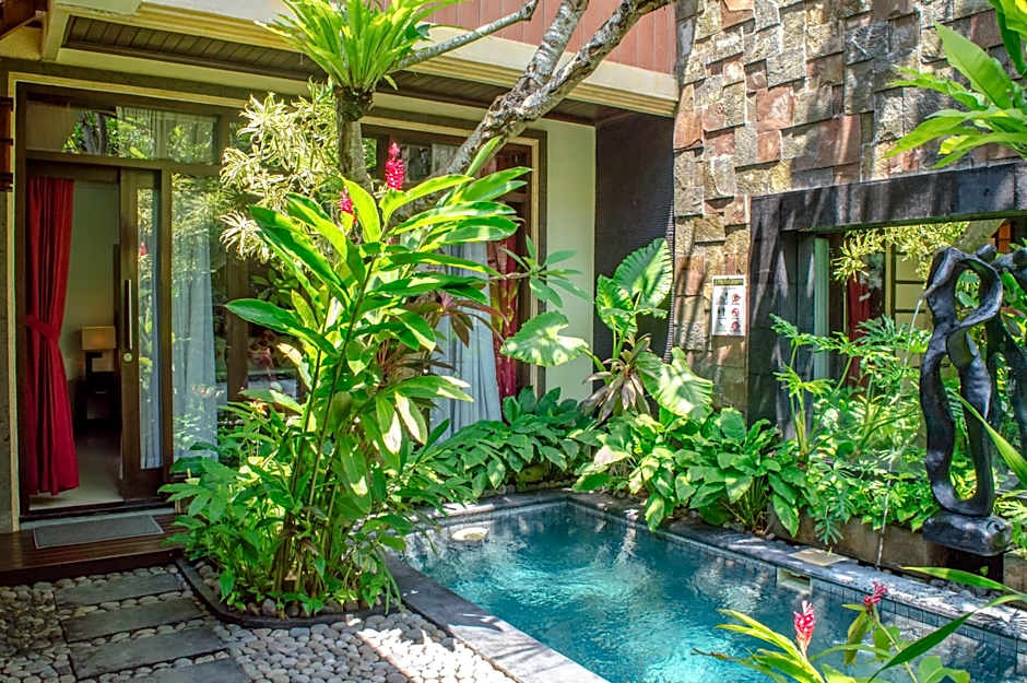 Room configurations span villas and suites, with several options featuring private pools. The property sits about from the city center and has reviews, with prices starting from . Address: Jln. Bidadari 108x, Seminyak, Indonesia. Payments accepted: American Express, Mastercard, Visa; cash is not accepted.