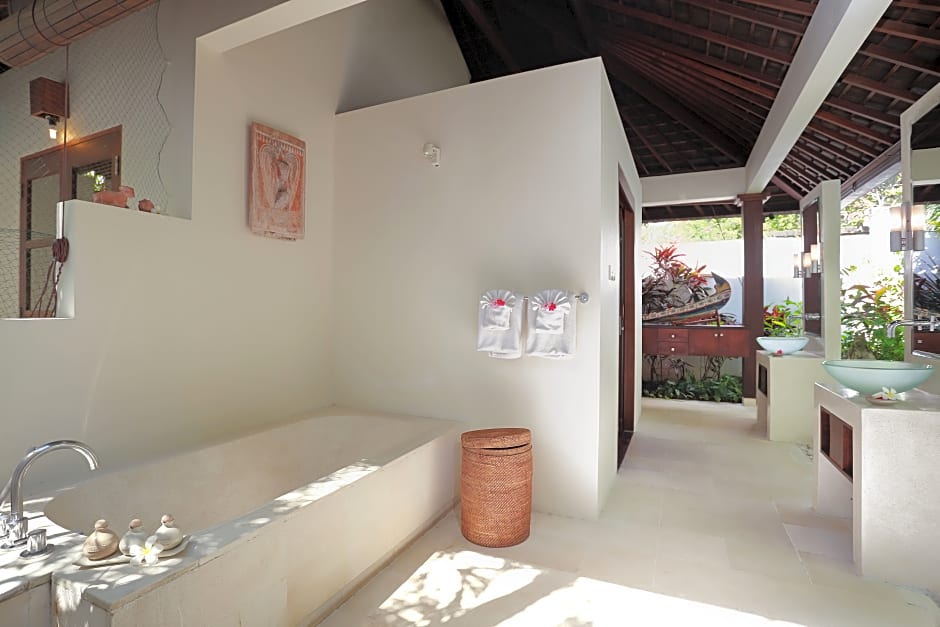 This spacious 2-bedroom villa comes with a private outdoor swimming pool. It also has a separate living room. Each bedroom is air-conditioned and fitted with a wardrobe, and an private bathroom featuring shower and bath facilities as well as free toiletries. Guests staying minimum 5 nights get one-time, 60-minute massage for 2 people. Guests enjoy return airport transfer