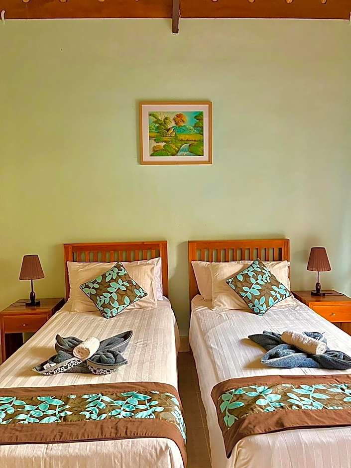 Cozy Cottages Lombok offers Double Rooms and Twin Rooms with Garden Views. Both room types are 172 sqft in size and accommodate 2 adults and 1 child. Smoking is not allowed in either room type, with the Double Room featuring a Queen size bed and the Twin Room providing 2 Twin beds and 1 Queen size bed.