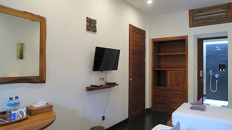 This air-conditioned double room features a balcony seating area with bean bags, electric kettle and semi-open bathroom, coffee and tea are provided.