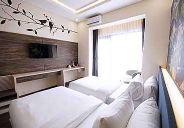 Relax in the spacious 258 sqft Superior Twin Room with a private bathroom, air conditioning, and a balcony. Perfect for two adults seeking comfort and tranquility.