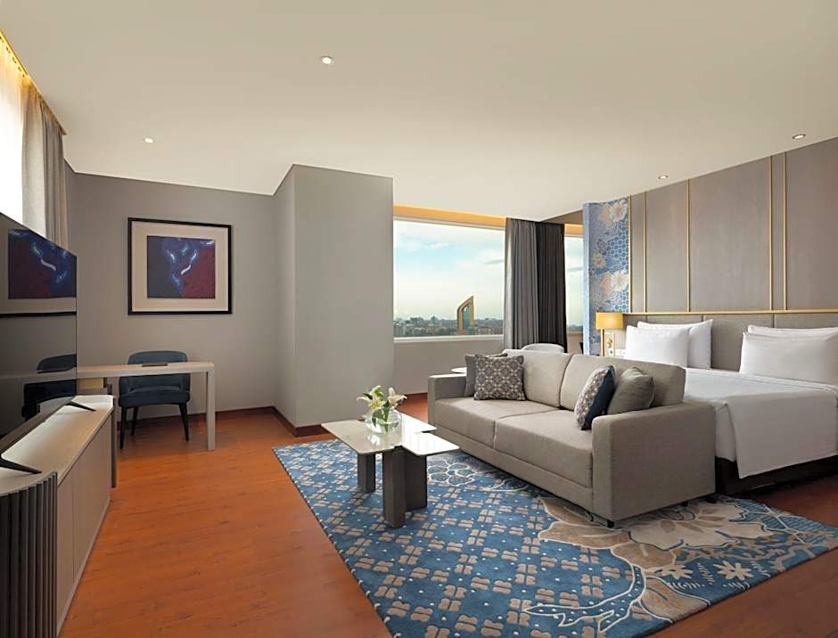 The air-conditioned suite has 1 bedroom and 1 bathroom with a shower and a hairdryer. The suite features soundproof walls, a tea and coffee maker, a seating area, a flat-screen TV with streaming services, as well as city views. The unit has 1 bed.