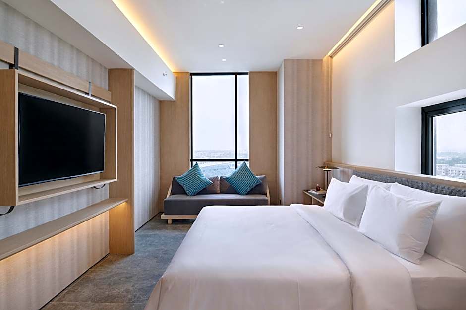 This spacious suite consists of 1 living room, 1 separate bedroom and 1 bathroom with a bath and free toiletries. The air-conditioned suite provides a flat-screen TV with streaming services, a coffee machine, a seating area, a dining area as well as city views. The unit offers 2 beds.