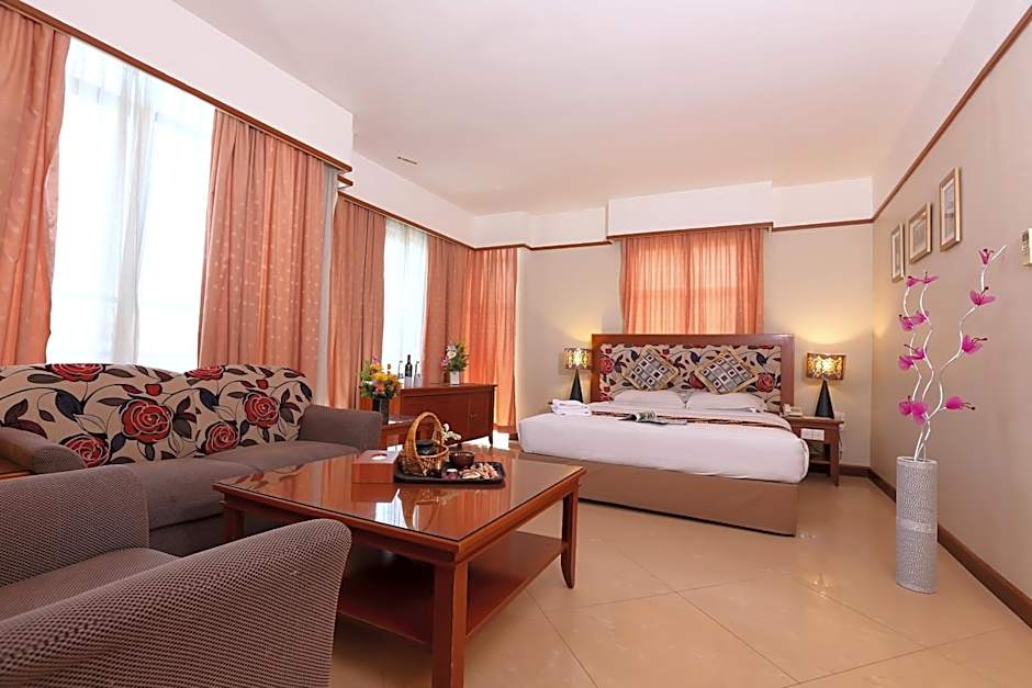 The air-conditioned suite offers a flat-screen TV with cable channels, a mini-bar, a seating area, a wardrobe as well as city views. The unit has 1 bed.