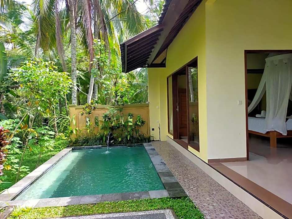 With more than 500 reviews backing its balanced 3-star appeal, the property sits about 1.7mi from the city center on Jalan Raya Tegalalang. Cash is the accepted payment method, and shuttle services (including airport transfers) are available for an extra fee. The pool welcomes guests of all ages, making this a charming countryside retreat for travelers seeking scenery, comfort, and a touch of Indonesian village charm.