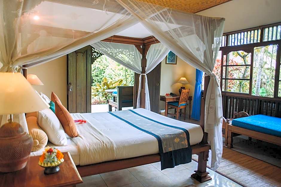 For guests seeking relaxation and rejuvenation, presents its Deluxe Garden rooms, a perfect retreat for your Indonesian holiday. These rooms, designed to accommodate 2 adults and 1 child, offer a cozy haven amidst the lush tropical gardens of the resort. Wake up to the sounds of nature and relish the comfort of your surroundings. Be it unwinding on your balcony or enjoying the serene views around you, the Deluxe Garden rooms provide a peaceful sanctuary for a memorable stay in Ubud.
