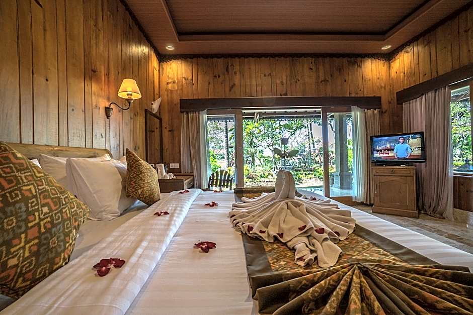 Featuring traditional Indonesian décor, air-conditioned room has a four-poster wooden bed, a private balcony and a TV. Private bathroom has a bathtub.