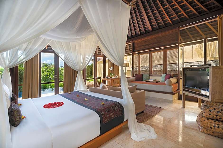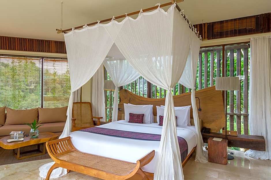 Welcome to Komaneka at Tanggayuda Ubud, a luxurious 5-star resort nestled in the stunning heart of Ubud, Indonesia! Just 3,5 mailia from the bustling city center, you'll experience the perfect blend of seclusion and accessibility. Start your day off right with a sumptuous breakfast, and prepare to indulge in a world of comfort and pampering that awaits you.