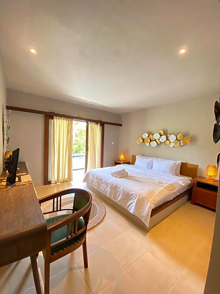 Address: Jalan Raya Andong . Amenities include an outdoor swimming pool (free), private parking (free), free Wifi, and a streaming service (like Netflix), plus air conditioning, on-site parking (free), a terrace, non-smoking rooms, beach umbrellas (free), beach chairs/Loungers, a patio, garden, free toiletries, a balcony, and a bathtub.