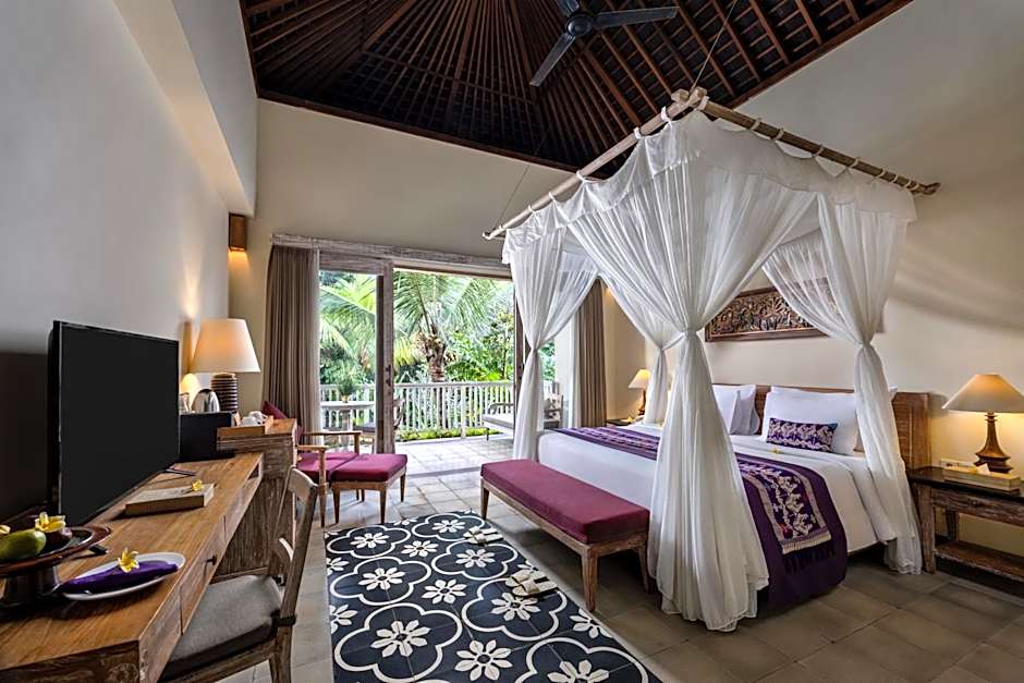 Pramana Watu Kurung is a 5-star resort in Ubud, Indonesia, about 3 mailia from the city center. Nestled along the river with garden-filled grounds, the property blends peaceful natural beauty with modern comforts. Highlights include a private pool, an outdoor swimming pool, and spa/wellness packages, all set against a backdrop of lush terraces and tranquil scenery.