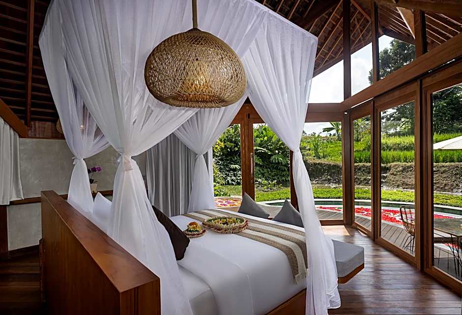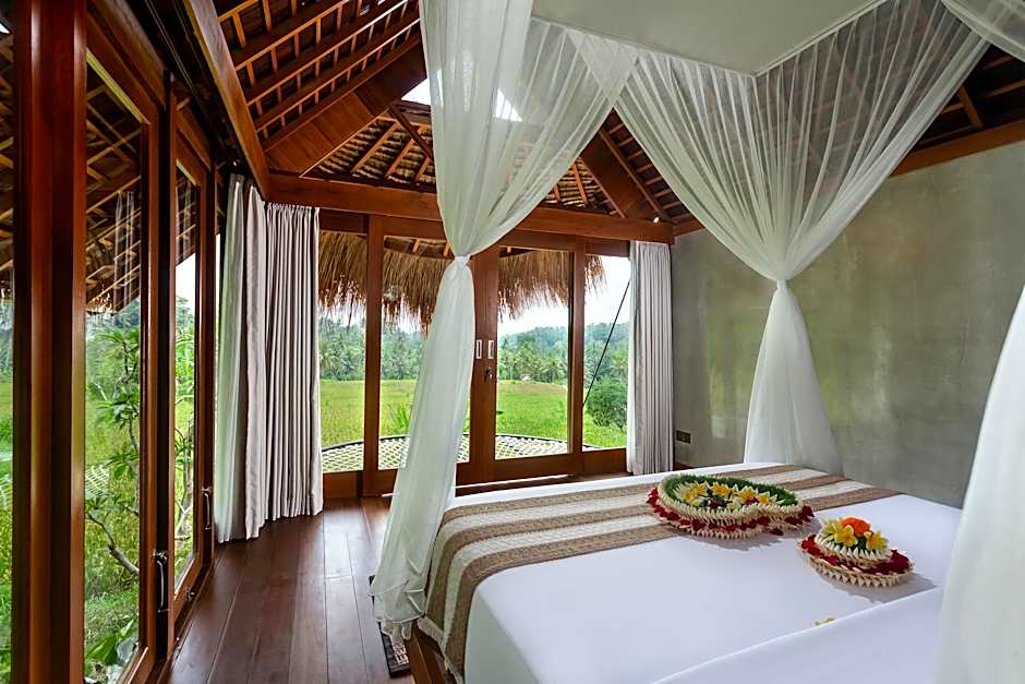 Garden views and outdoor spaces like a terrace and balcony create an inviting ambiance, while the location in Ubud provides convenient access to the Gianyar Regency area. Minimum price: not listed in the provided data.
