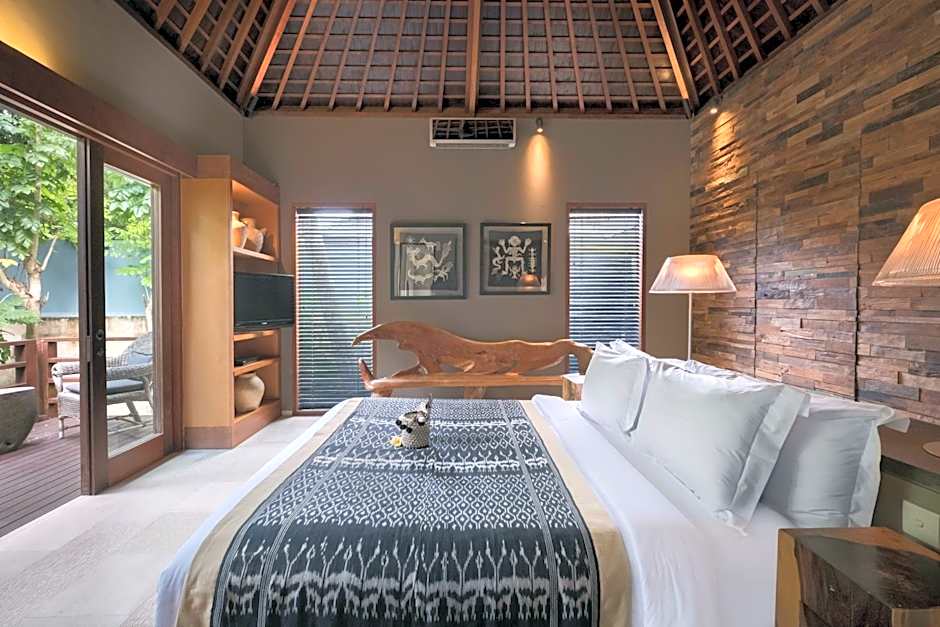 This spacious and elegant one-bedroom villa surrounded by lush tropical garden. The villa itself was created using natural materials offering a haven which is fitted with modern amenities like flat-screen satellite TV, CD/DVD player and a mini-bar. The air-conditioned bedroom has a wardrobe and a beautiful private bathroom boasting a stone bath. The separate living area opens directly to the outdoors.