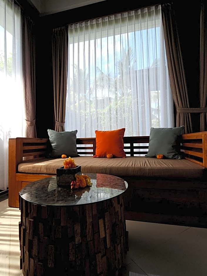This villa features a balcony, a fully equipped kitchen and a living room. Guests can enjoy views of the surrounding rice fields during both sunrise and sunset. The private bathroom has a bathtub and open shower with hot and cold water.
