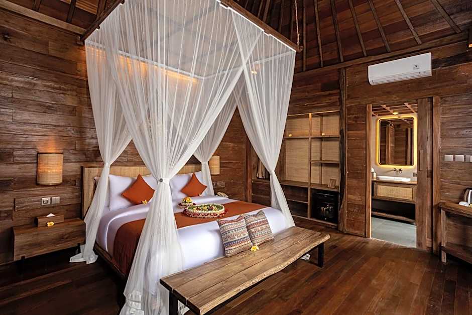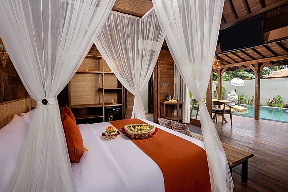 Set in Kemenuh, a lush pocket near Ubud, the property unfolds as a garden oasis with serene views from balcony spaces and a terrace to soak in the outdoors. A bright outdoor pool waits for a refreshing dip after a day of exploring the region.