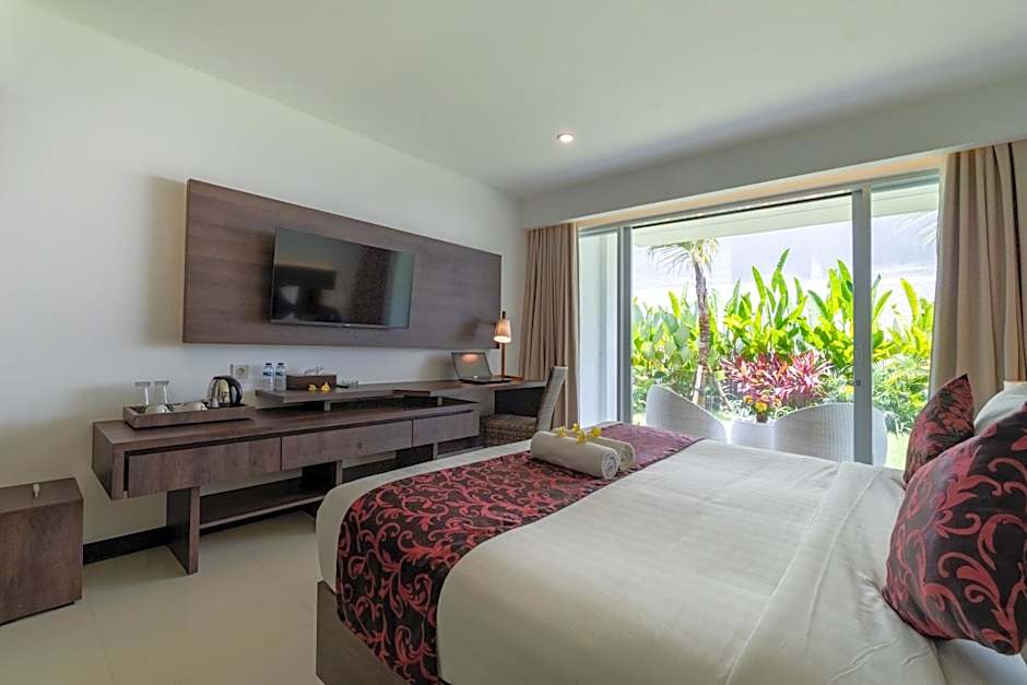 Adhiloka Restouran serves as the on-site dining hub, inviting travelers to linger over meals after a day of exploration. The outdoor vibe extends to the balcony and patio, ideal for a morning coffee or an evening drink as the sea breeze rolls in.
