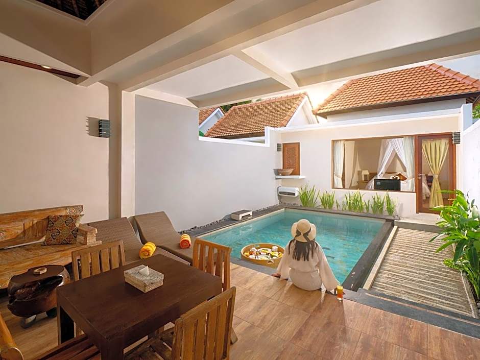 Cozy and inviting, these villas are perfect for couples or solo travelers seeking a romantic or restful stay. Each unit features a private plunge pool, a spacious bedroom, and a modern bathroom, all designed with warm, natural tones for a calming ambiance.