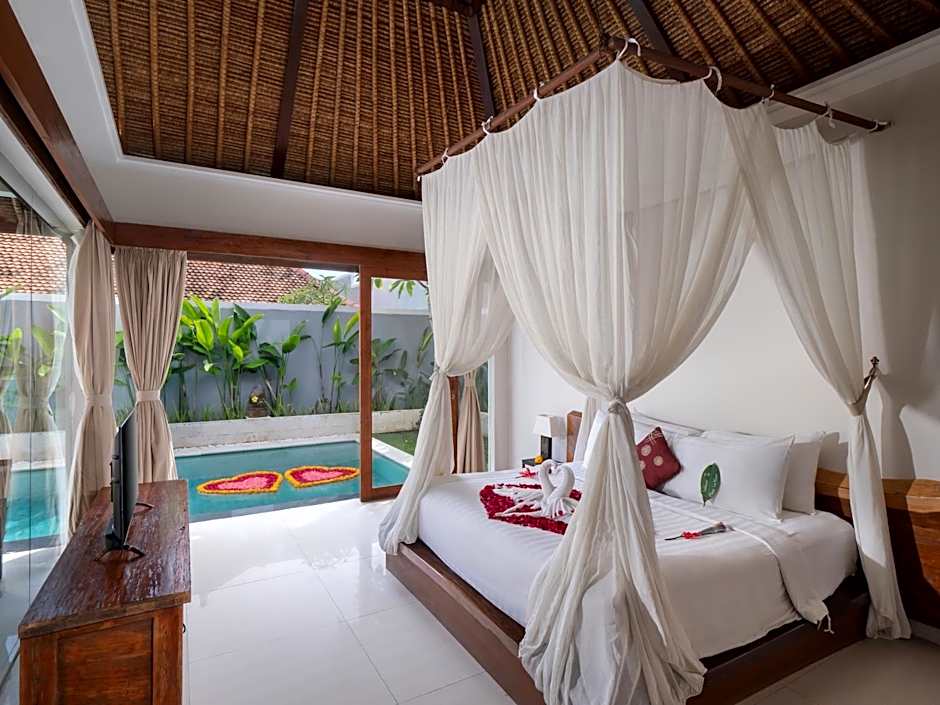 Ideal for honeymooners or those desiring added comfort, these villas feature a larger living space, a minimal kitchen area for light cooking or meal prep, and outdoor bathroom that blends indoor elegance with open-air serenity. The private pool is surrounded by tropical landscaping, offering complete seclusion and tranquility.