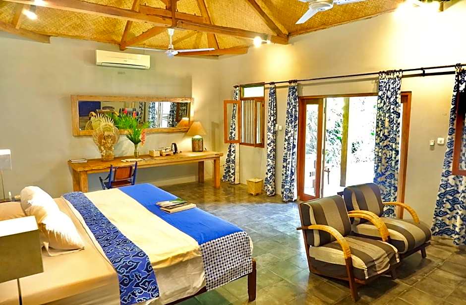 This double room features traditional architectural touches and offers views of the garden or pool. It also has air conditioning, mini-bar and sofa.