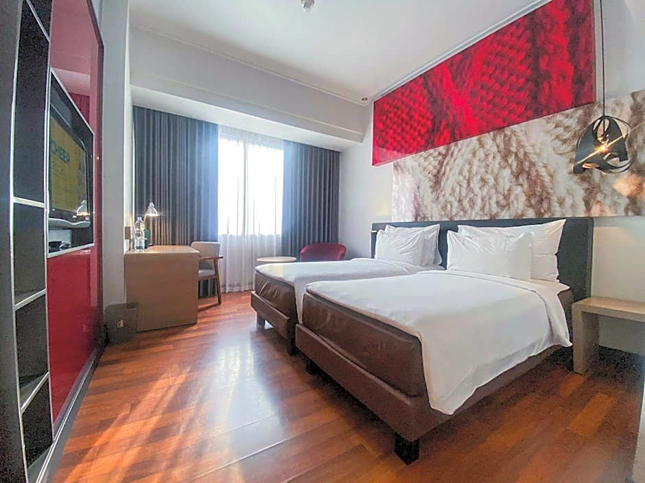 The air-conditioned twin room offers a flat-screen TV with cable channels, a seating area, a safe deposit box, an electric kettle as well as city views. The unit has 2 beds.