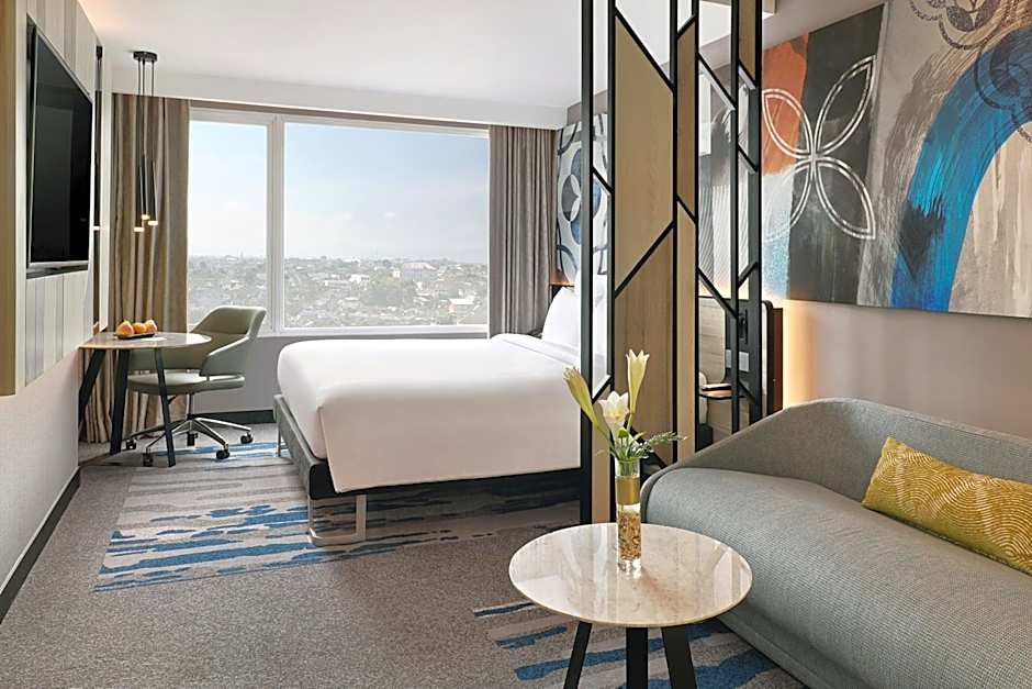 Welcome to Novotel Suites Yogyakarta Malioboro, your perfect sanctuary in the heart of Indonesia's cultural gem! Nestled just 0.6mi from the lively city center, this 4-star hotel offers the enticing allure of vibrant streets just a stone's throw away. Priced from only $44 per night, indulge in a delightful stay where modern comforts meet local charm—perfect for both weary travelers and adventurous explorers alike.