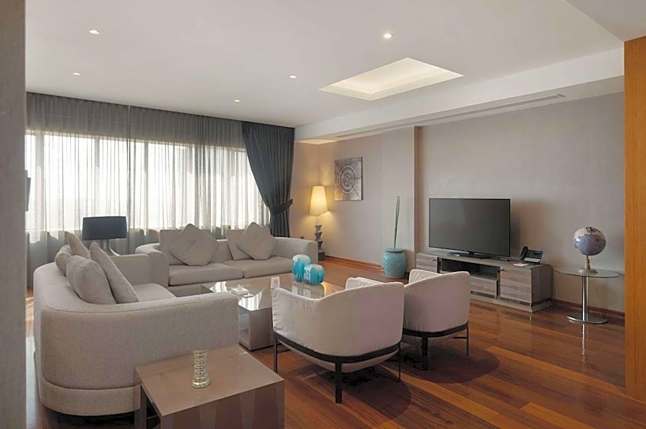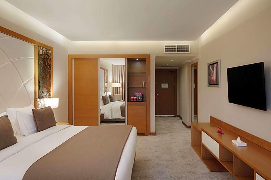 This spacious suite consists of 1 living room, 2 separate bedrooms and 3 bathrooms with a walk-in shower and free toiletries. The air-conditioned suite provides a flat-screen TV with satellite channels, soundproof walls, a mini-bar, a tea and coffee maker as well as city views. The unit offers 3 beds.