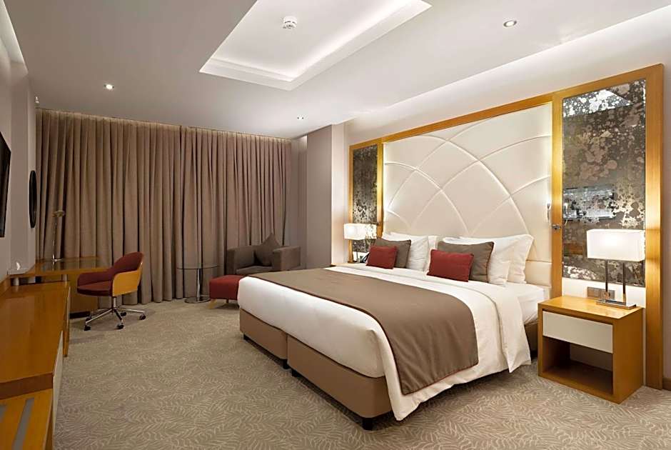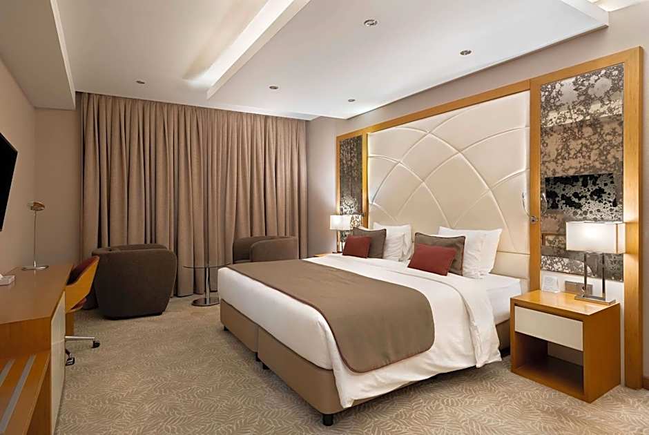 This spacious suite consists of 1 living room, 1 separate bedroom and 2 bathrooms with a walk-in shower and free toiletries. The air-conditioned suite provides a flat-screen TV with satellite channels, soundproof walls, a mini-bar, a tea and coffee maker as well as city views. The unit offers 1 bed.