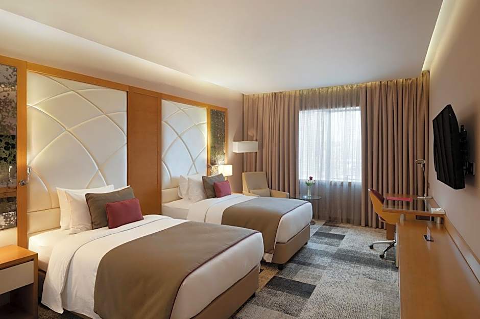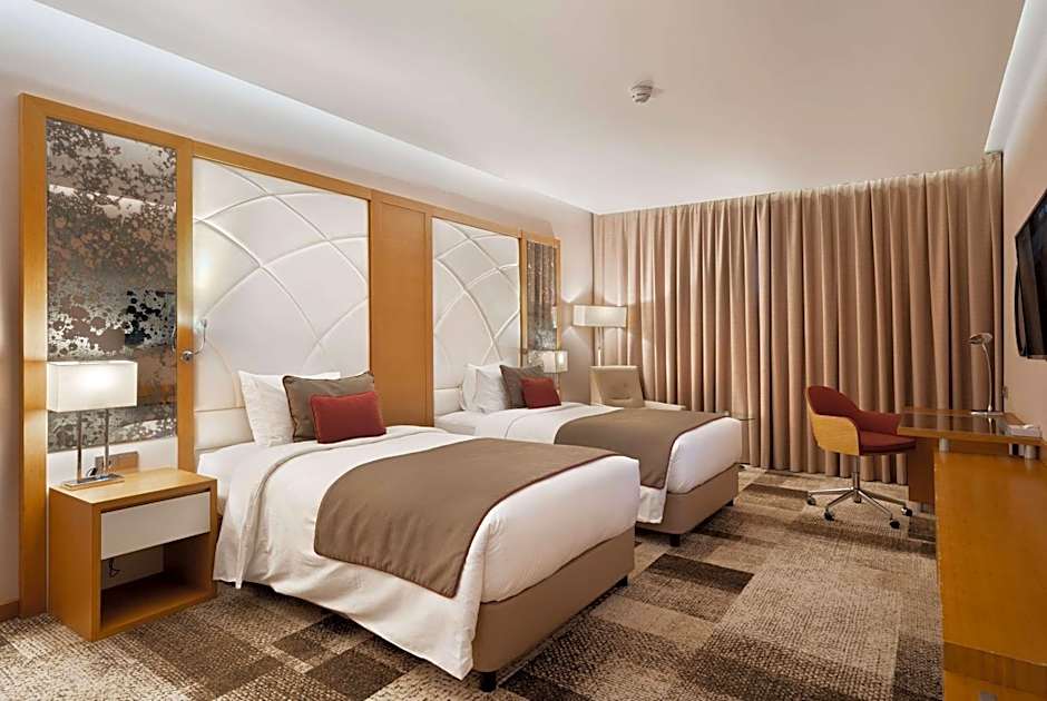 Providing free toiletries and bathrobes, this twin room includes a private bathroom with a walk-in shower, a bidet and a hairdryer. The spacious air-conditioned twin room provides a flat-screen TV with satellite channels, soundproof walls, a mini-bar, a tea and coffee maker as well as city views. The unit offers 2 beds.
