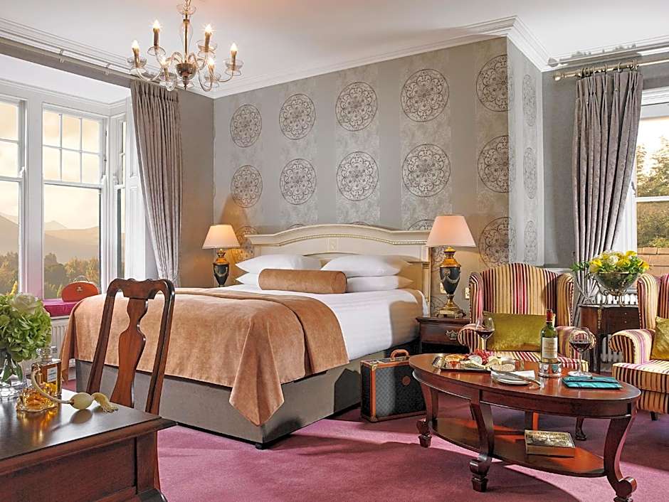 The Killarney Randles Hotel offers a variety of room types including Deluxe Double Rooms, Twin Rooms, Triple Rooms, Signature Rooms, Single Rooms, Petite Single Rooms, Double Rooms, and Junior Suites. Most rooms do not allow smoking. The rooms accommodate various numbers of adults and children, with bed sizes ranging from Twin to King. Room sizes range from 140 sqft to 484 sqft.
