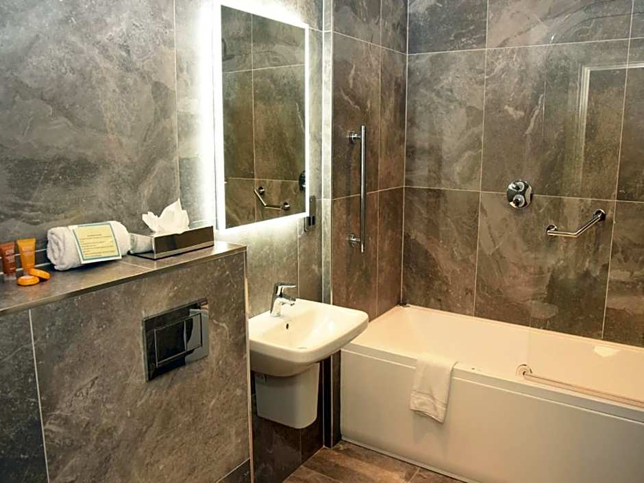 With warm towels and luxury private bathroom with designer toiletries, this room also enjoys 32-inch flat-screen TV with a 24-hour movie channel. Rooms also include tea/coffee and ironing facilities.