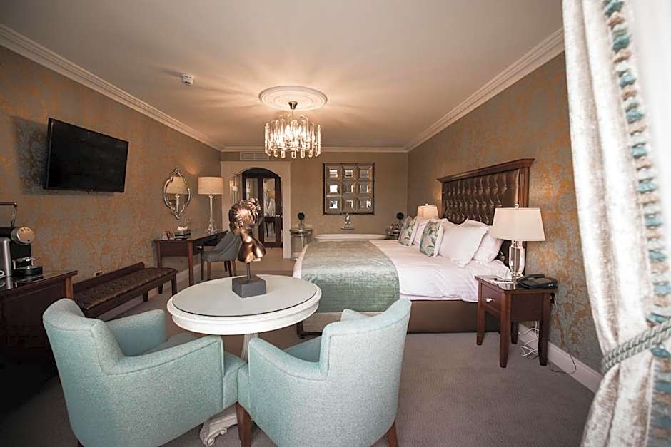 This room offers a seating area with fireplace, flat-screen TV with DVD player and access to free wired Internet. It also features tea and coffee making facilities, complimentary mineral water, as well as air conditioning. The private bathroom benefits from a hairdryer. Free on-site parking.